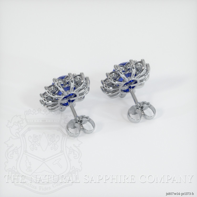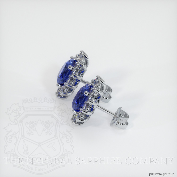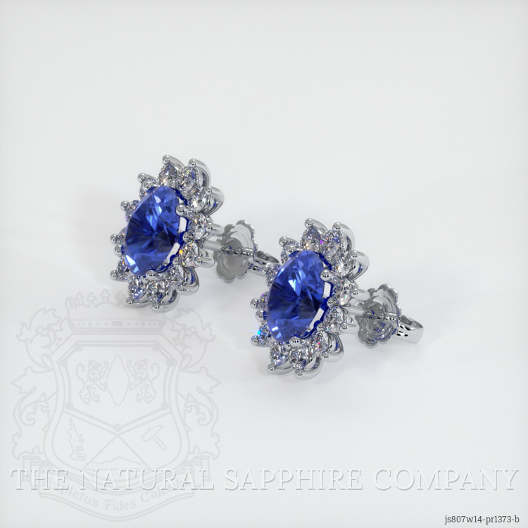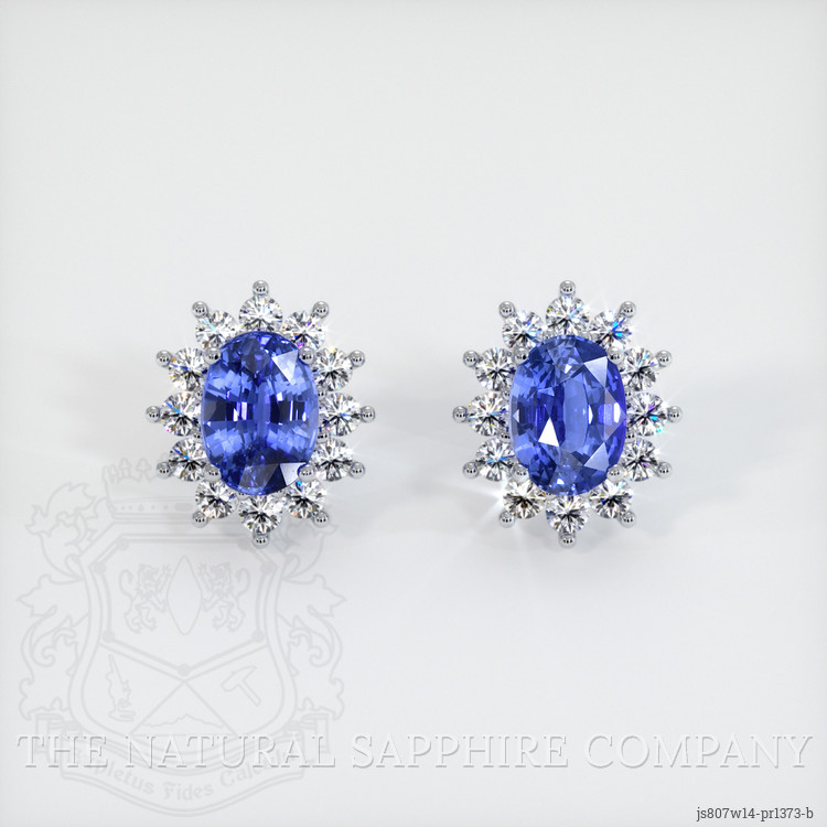The earrings feature a beautiful, transparent C.Dunaigre certified pair of sapphires that are 4.00 total carat weight. They are oval shape blue sapphires, with the dimensions of 8.21 x 6.13 x 4.99 mm and are mixed brilliant cut, have a clarity grade of eye clean (evaluated at eye level), intense color saturation, and an excellent polish. The origin of this pair of sapphires is Ceylon (Sri Lanka).