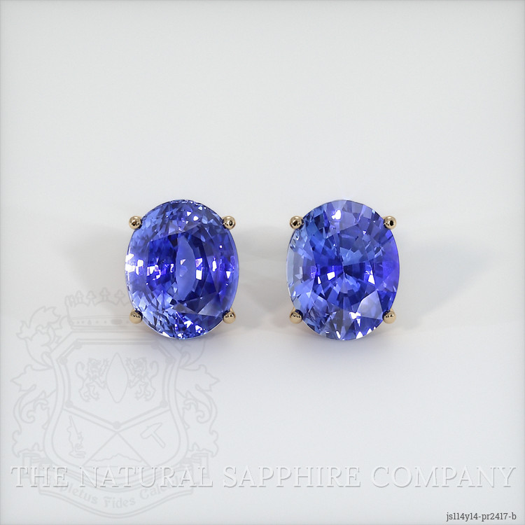 The earrings feature a beautiful, transparent C.Dunaigre certified pair of sapphires that are 8.74 total carat weight. They are oval shape blue sapphires, with the dimensions of 10.60 x 8.70 x 5.92 mm and are mixed brilliant cut, have a clarity grade of eye clean (evaluated at eye level), intense color saturation, and an excellent polish. The origin of this pair of sapphires is Ceylon (Sri Lanka).