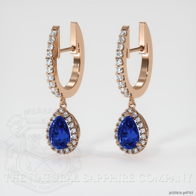 Pave Blue Sapphire Earring 1.68 Ct.Tw.Total Carat Weight, 14K Rose Gold