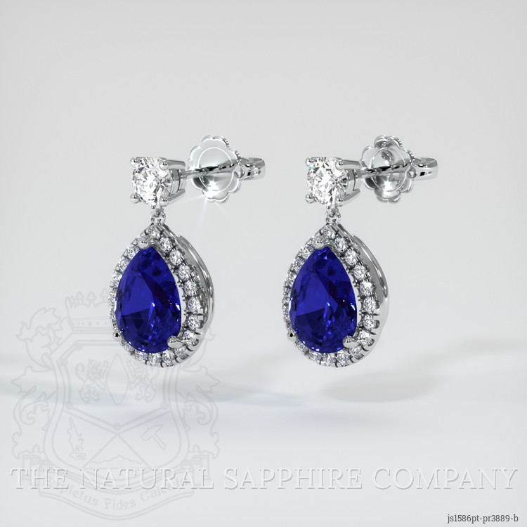 Pave Blue Sapphire Earring 3.82 Ct.Tw.Total Carat Weight, Platinum 950