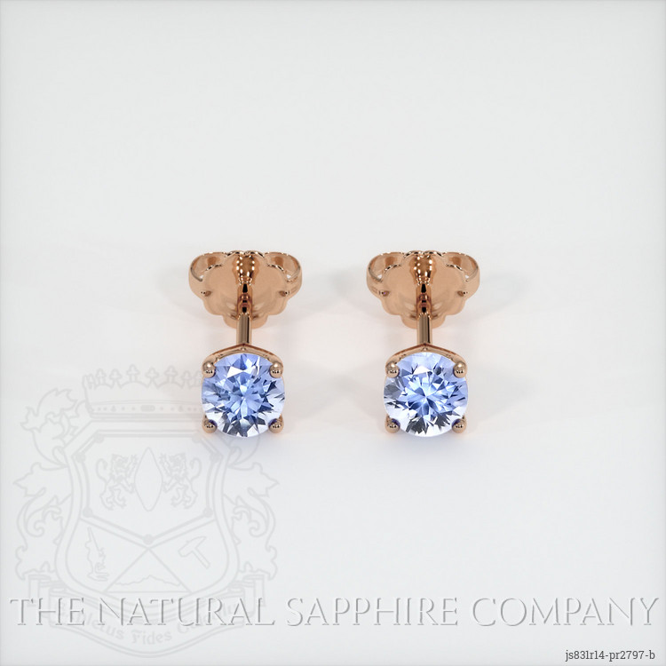 The earrings feature a beautiful, transparent pair of sapphires that are 0.69 total carat weight. They are round shape blue sapphires, with the dimensions of 4.15 x 4.15 x 2.71 mm and are brilliant cut, have a clarity grade of very slightly included (evaluated at eye level), light color saturation, and an excellent polish. The origin of this pair of sapphires is Ceylon (Sri Lanka).