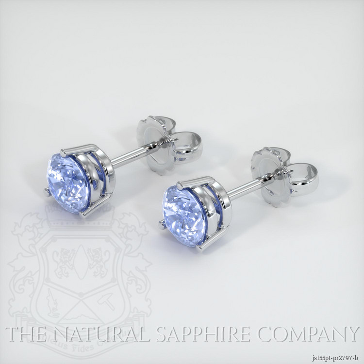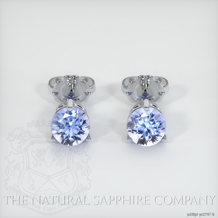 The earrings feature a beautiful, transparent pair of sapphires that are 0.69 total carat weight. They are round shape blue sapphires, with the dimensions of 4.15 x 4.15 x 2.71 mm and are brilliant cut, have a clarity grade of very slightly included (evaluated at eye level), light color saturation, and an excellent polish. The origin of this pair of sapphires is Ceylon (Sri Lanka).
