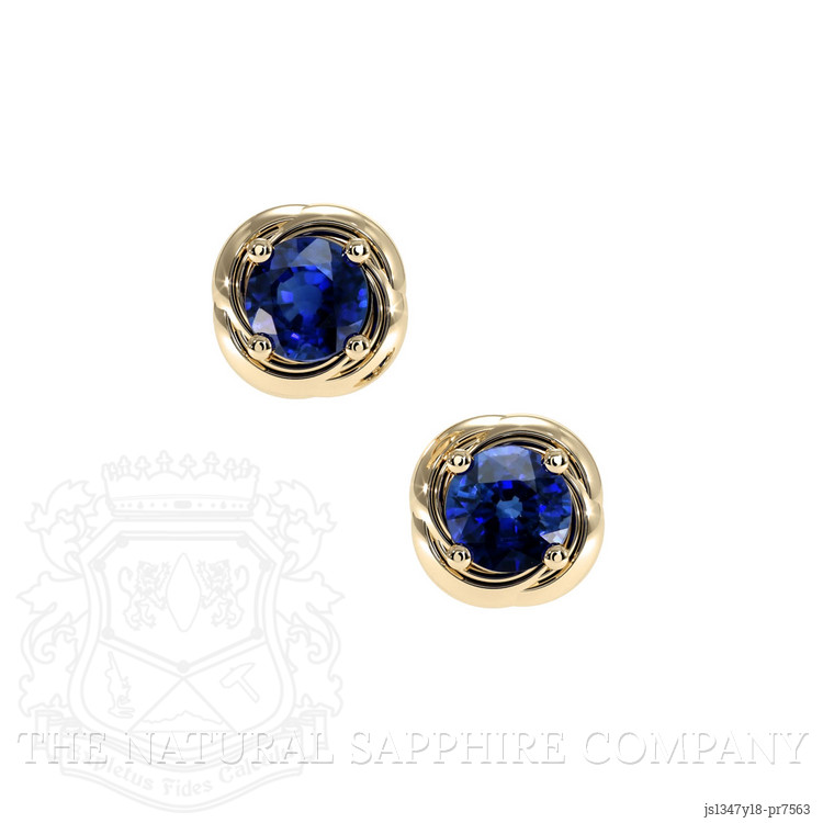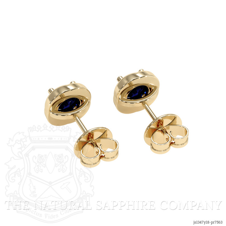 Studs Blue Sapphire Earring 0.65 Ct.Tw.Total Carat Weight, 18K Yellow Gold