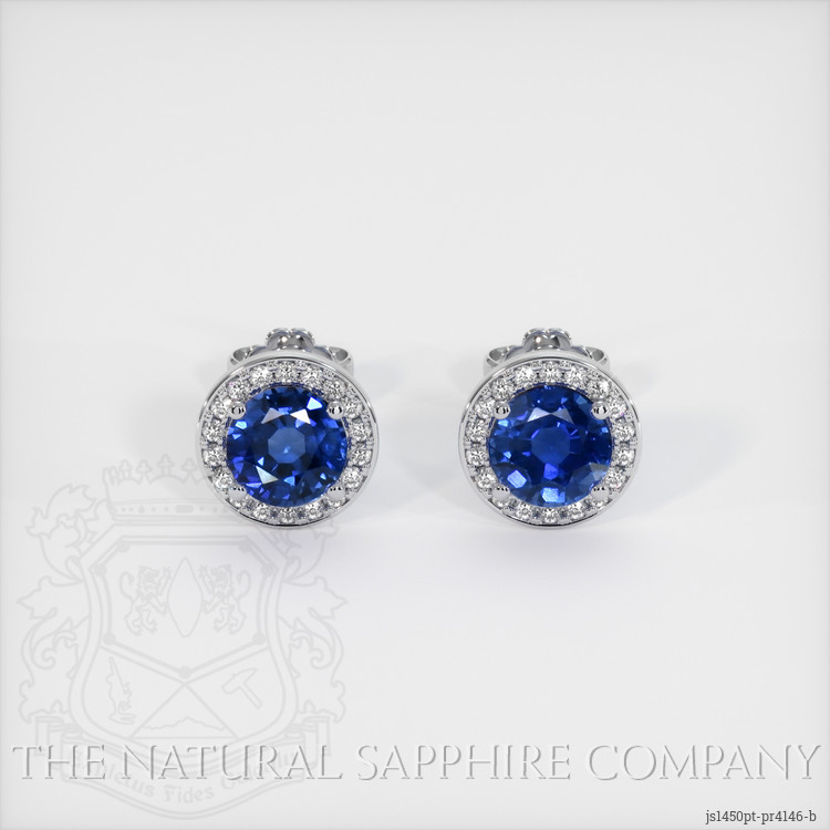 The earrings feature a beautiful, transparent pair of sapphires that are 0.79 total carat weight. They are round shape blue sapphires, with the dimensions of 4.23 x 4.20 x 3.00 mm and are mixed brilliant cut, have a clarity grade of eye clean (evaluated at eye level), vivid color saturation, and an excellent polish. The origin of this pair of sapphires is Thailand.