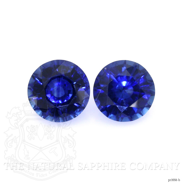The earrings feature a beautiful, transparent pair of sapphires that are 1.68 total carat weight. They are round shape blue sapphires, with the dimensions of 5.53 x 5.42 x 3.60 mm and are mixed brilliant cut, have a clarity grade of very slightly included (evaluated at eye level), vivid color saturation, and an excellent polish. The origin of this pair of sapphires is Ceylon (Sri Lanka).
