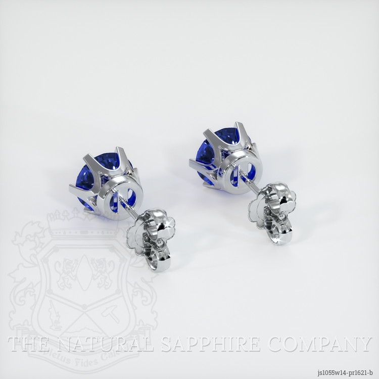 Studs Blue Sapphire Earring 2.14 Ct.Tw.Total Carat Weight, 14K White Gold