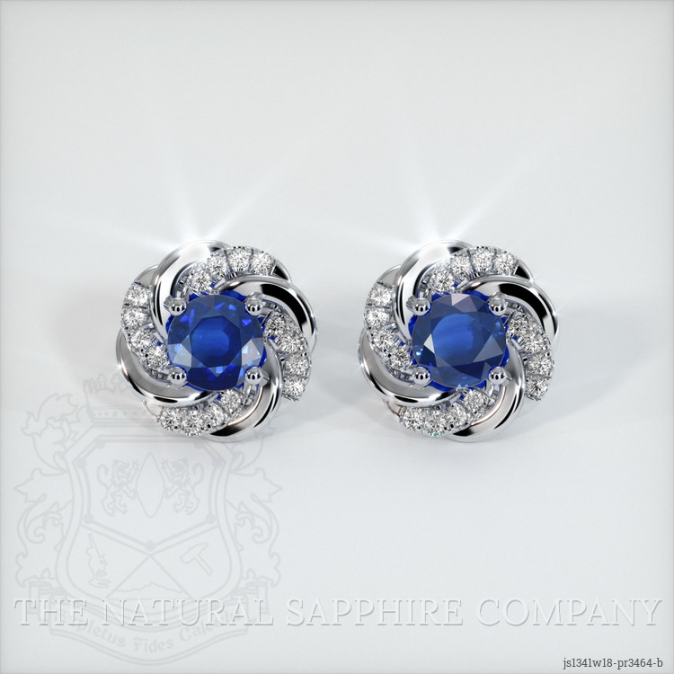 The earrings feature a beautiful, transparent pair of sapphires that are 3.06 total carat weight. They are round shape blue sapphires, with the dimensions of 6.39 x 6.36 x 4.51 mm and are mixed brilliant cut, have a clarity grade of eye clean (evaluated at eye level), vivid color saturation, and an excellent polish. The origin of this pair of sapphires is Thailand.