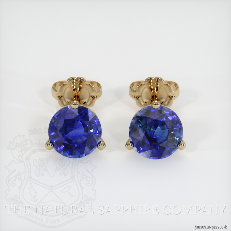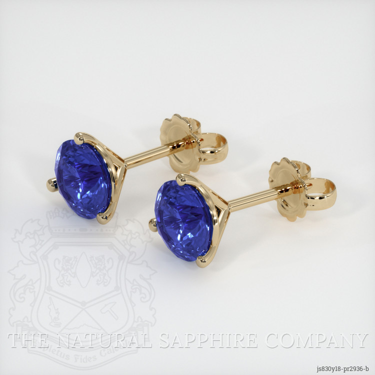 Studs Blue Sapphire Earring 3.20 Ct.Tw.Total Carat Weight, 18K Yellow Gold