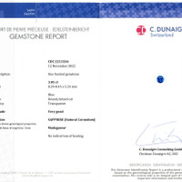 For centuries, sapphires have been revered as the celestial gemstones of wisdom, royalty, and romance. The Natural Sapphire Company proudly presents a pair of exquisite sapphire earrings that embody this rich legacy. Each earring features a stunning, transparent C.Dunaigre certified blue sapphire from the mesmerizing island of Madagascar. With a total carat weight of 6.11, these gemstones are not just accessories, but a piece of history and elegance that have adorned crowns and rings throughout the ages. The allure of blue sapphires has transcended time, reflecting the skies and seas in their medium intense color saturation. Our sapphires are fashioned in a round shape with mixed brilliant cut, expertly crafted to mesmerize with every turn of the head. Measuring 8.57 x 8.27 x 5.73 mm, they capture the light with an eye clean clarity, and boast an excellent polish that enhances their captivating glow.