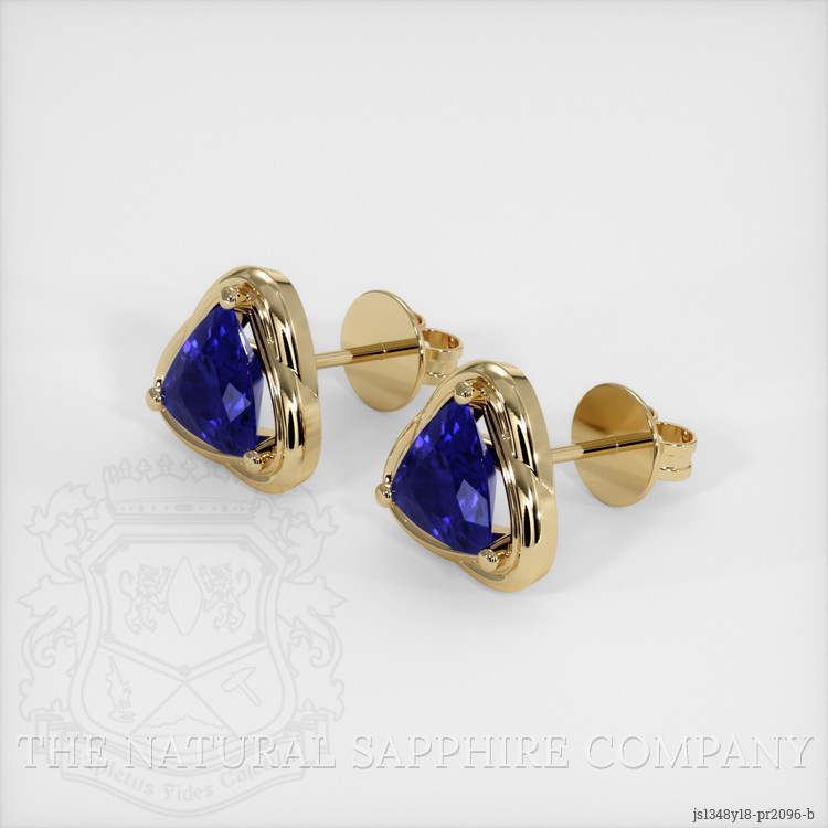 Studs Blue Sapphire Earring 2.63 Ct.Tw.Total Carat Weight, 18K Yellow Gold