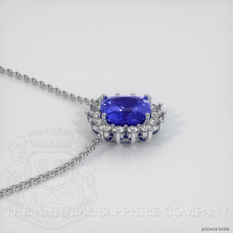 Halo Blue Sapphire Necklace 7.24 Ct., 14K White Gold