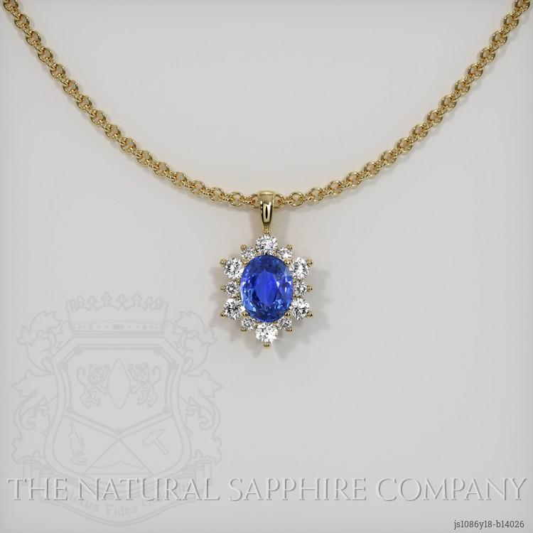 Halo Blue Sapphire Pendant 2.47 Ct., 18K Yellow Gold