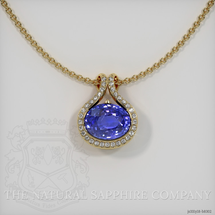The pendant features a beautiful, transparent Other certified Blue 3.30 carat oval shape blue sapphire with the dimensions of 8.94 x 7.21 x 5.72 mm and a mixed brilliant cut. It has a clarity grade of very slightly included (evaluated at eye level), vivid color saturation, and an excellent polish. The origin of this sapphire is Ceylon (Sri Lanka).
