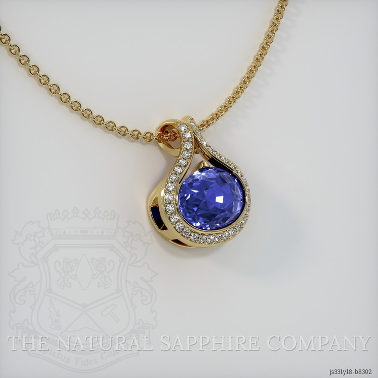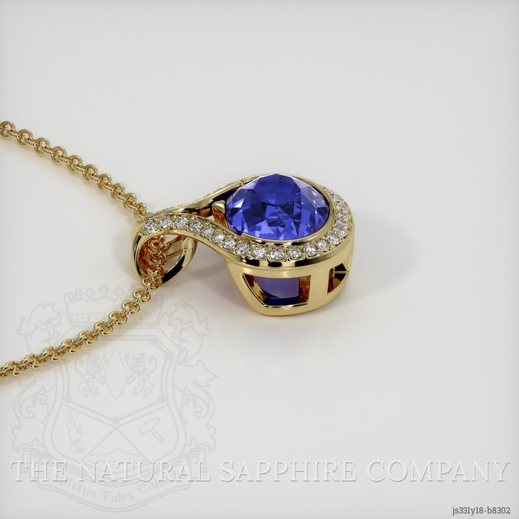 Pave Blue Sapphire Pendant 3.30 Ct., 18K Yellow Gold