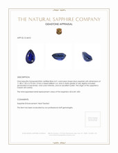 Inside you will find well organized reporting to include appraisal, identification and gem faceting grade reports. Special care literature on how to clean your sapphire or jewelry is included as well.