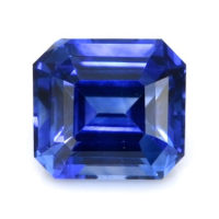 The ring features a beautiful, transparent 1.29 carat asscher - octagon shape blue sapphire with the dimensions of 5.93 x 5.42 x 4.00 mm and a asscher cut. It has a clarity grade of eye clean (evaluated at eye level), intense color saturation, and an excellent polish. The origin of this sapphire is Ceylon (Sri Lanka).
