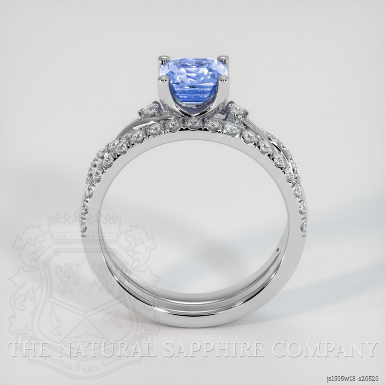Complementing the sapphire's majestic blue are meticulously selected white round diamonds that frame and enhance its splendor. The combined weight of these diamonds is approximately 0.375 carats, each with a Very Slightly Included (VS1/VS2) clarity grade ensuring minimal inclusions visible under magnification, evidencing their superior quality. With a stunning F color grade, the diamonds boast near-colorless brilliance, which perfectly complements the cool tones of the white gold setting, amplifying the overall sheen and sophistication of the piece.