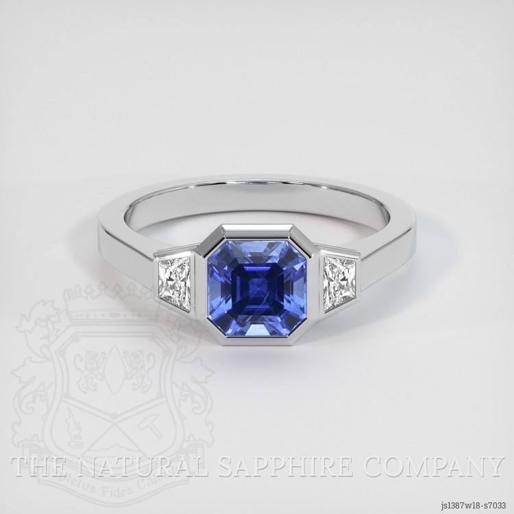 This exquisite ring is the perfect solution for anyone in search of a refined and elegant piece of jewelry. At its center is a stunning 2.19 carat asscher cut blue sapphire, renowned for its exceptional transparency. With dimensions of 6.86 x 6.85 x 5.25 mm, this sapphire boasts an eye-clean clarity grade, which means it is free of inclusions when viewed at eye level. Adding to its allure is the intense color saturation that makes this gemstone a true standout. The excellent polish ensures maximum brilliance and luster. Originating from the famous gem mines of Ceylon (Sri Lanka), the sapphire's pedigree is a testament to its quality.