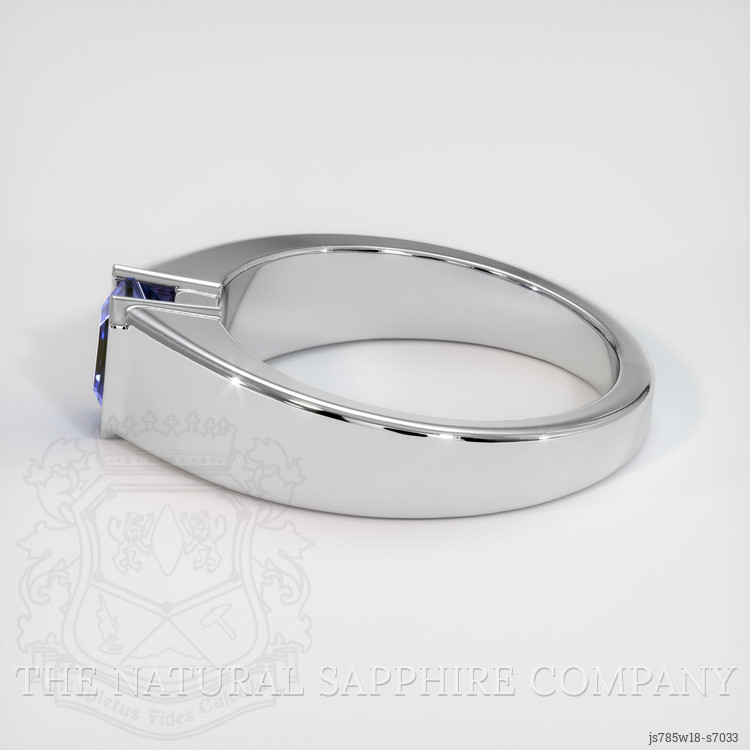 The men's ring features a beautiful, transparent 2.19 carat asscher - octagon shape blue sapphire with the dimensions of 6.86 x 6.85 x 5.25 mm and a asscher cut. It has a clarity grade of eye clean (evaluated at eye level), intense color saturation, and an excellent polish. The origin of this sapphire is Ceylon (Sri Lanka).