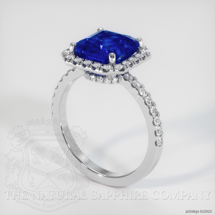 The ring features a beautiful, transparent C.Dunaigre certified Vivid Blue “Royal Blue”  4.08 carat asscher - octagon shape blue sapphire with the dimensions of 8.53 x 8.41 x 5.86 mm and a asscher cut. It has a clarity grade of eye clean (evaluated at eye level), vivid color saturation, and an excellent polish. The origin of this sapphire is Ceylon (Sri Lanka).