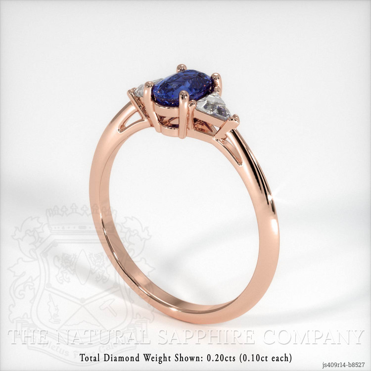 Three Stone Blue Sapphire Ring 0.49 Ct., 14K Rose Gold