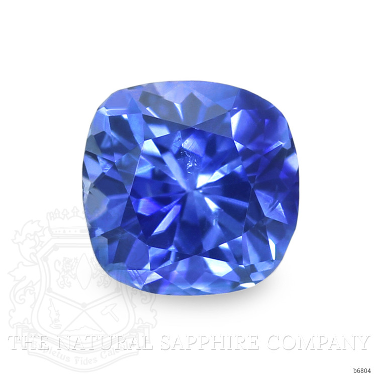 The ring features a beautiful, transparent 0.73 carat cushion shape blue sapphire with the dimensions of 5.08 x 5.04 x 3.51 mm and a mixed brilliant cut. It has a clarity grade of very slightly included (evaluated at eye level), vivid color saturation, and an excellent polish. The origin of this sapphire is Ceylon (Sri Lanka).