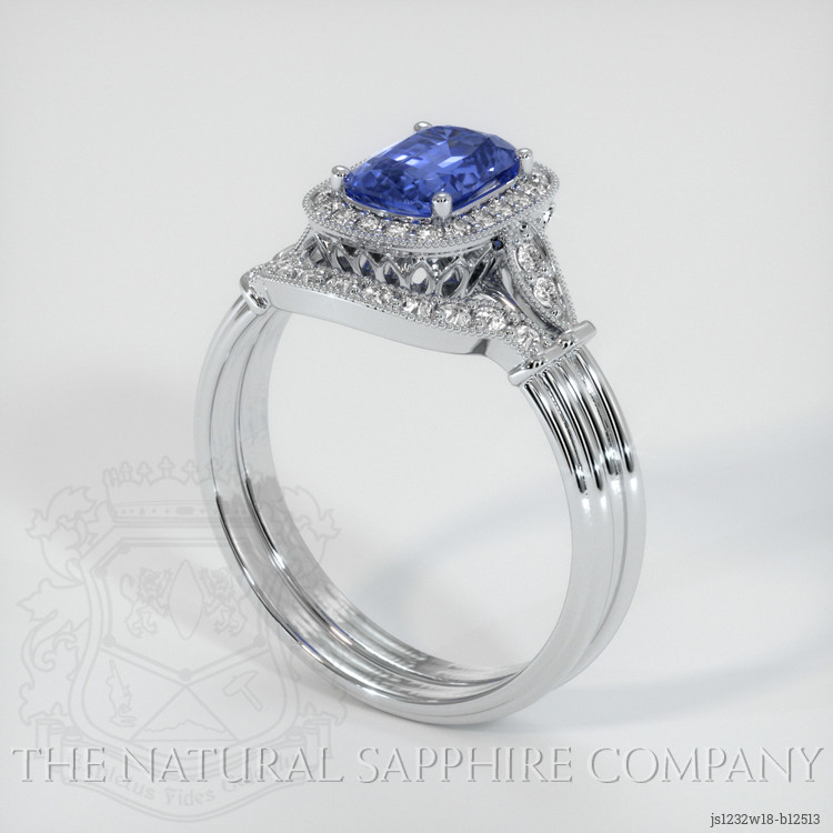 Antique Style Blue Sapphire Ring 1.00 Ct., 18K White Gold