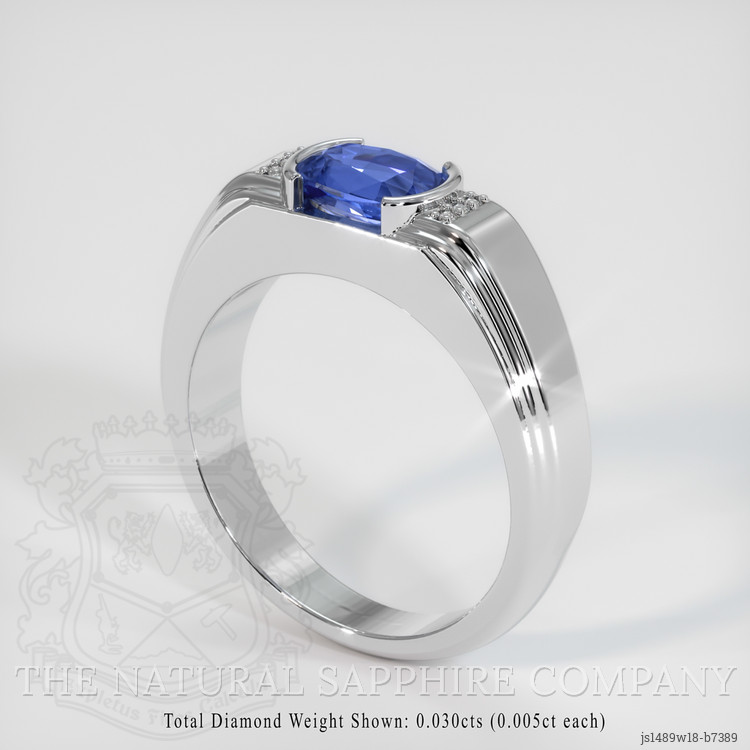 Men's Blue Sapphire Ring 1.28 Ct., 18K White Gold