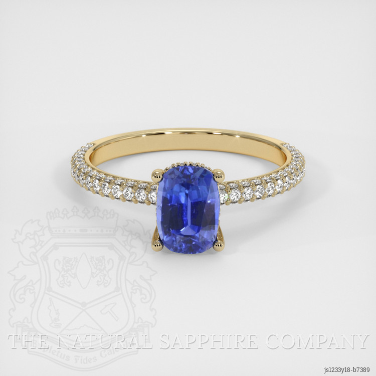 Pave Blue Sapphire Ring 1.28 Ct., 18K Yellow Gold