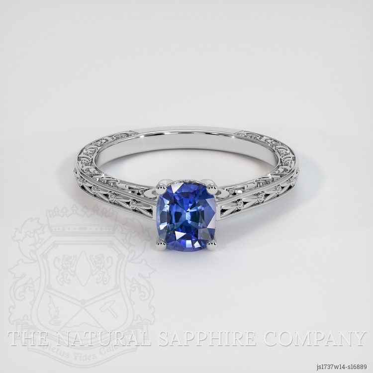 Set in a band crafted from 14K white gold, the design of this ring focuses on both simplicity and sophistication. The white gold setting complements the sapphire's vibrant color, enhancing its prominence and ensuring that the gemstone remains the centerpiece. This combination of materials not only promises durability and timeless elegance but also underscores the high-quality standards that define The Natural Sapphire Company's offerings.