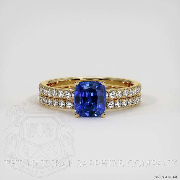 Discover the ultimate culmination of elegance and meaningful craftsmanship with this stunning ring, a piece that embodies both beauty and legacy. Every meticulous detail of this ring, from its impressive gemstone to its masterful setting, tells a story worth cherishing. Central to the ring's appeal is the exquisite 1.53 carat cushion-shaped blue sapphire, a gemstone renowned for its vibrant color and exceptional clarity. Measuring 6.70 x 5.85 x 4.21 mm, this sapphire boasts a mixed brilliant cut that enhances its natural brilliance and allure. Its vivid color saturation is a testament to its high quality, while its clarity grade of very slightly included, evaluated at eye level, ensures a virtually flawless appearance.