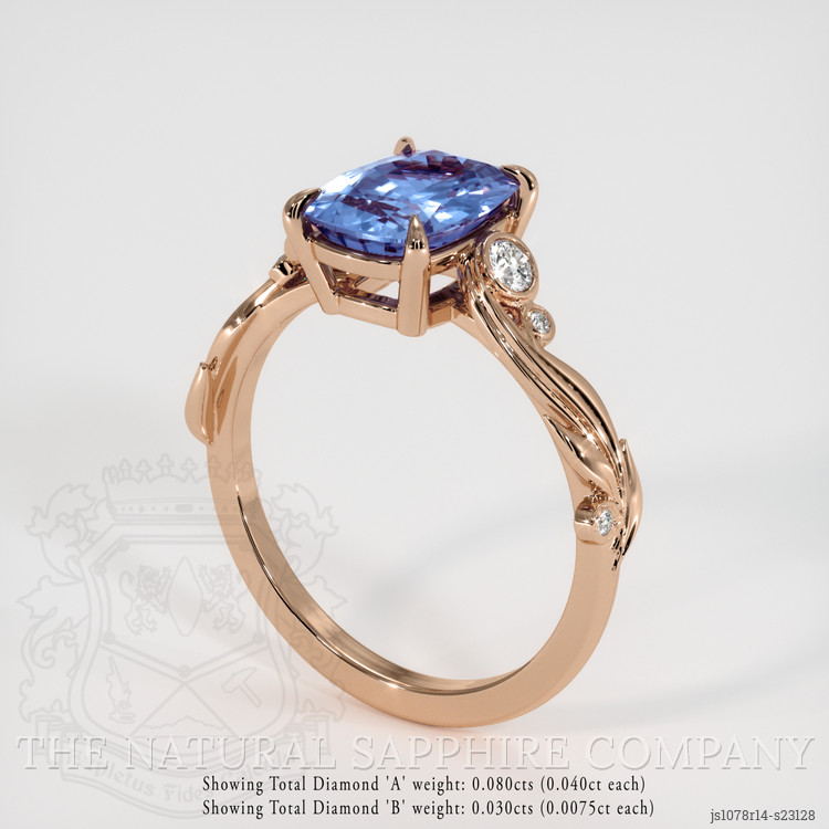 Accent Stones Blue Sapphire Ring 2.00 Ct., 14K Rose Gold