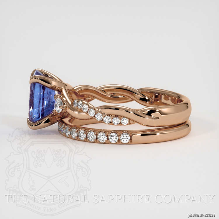Encasing the sapphire is a setting enhanced by carefully selected white diamonds. Each diamond, round and natural, offers sparkling accents that weigh a total of approximately 0.497 carats. With clarity ranging between Very Slightly Included (VS1, VS2) and color grades of F through G, these diamonds draw the eye and add to the ring’s distinguished allure. The blend of these magnificent elements is further unified by a band crafted in 14K rose gold, a metal known not only for its beauty but for a warmth that underscores the deep richness of the sapphire.