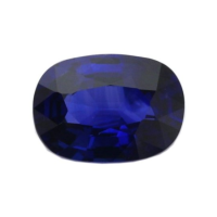 The ring features a beautiful, transparent 2.05 carat cushion shape blue sapphire with the dimensions of 9.14 x 6.57 x 3.88 mm and a mixed brilliant cut. It has a clarity grade of eye clean (evaluated at eye level), dark color saturation, and an excellent polish. The origin of this sapphire is Ceylon (Sri Lanka).