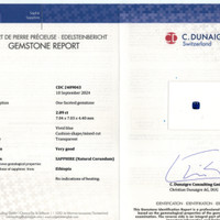 Introducing a masterpiece from The Natural Sapphire Company, this exquisite ring features a captivating 2.09 carat vivid blue sapphire. Its cushion shape measures 7.04 x 7.04 x 4.42 mm and is expertly cut in a mixed brilliant style. Certified by C.Dunaigre, this Ethiopian sapphire boasts an enchanting vivid color saturation and a clarity grade of very slightly included, ensuring that its intricate beauty is appreciated at eye level. The sapphire's allure is enhanced by an excellent polish, giving it a lustrous and radiant appearance. The origin in Ethiopia adds an exotic touch to its narrative, connecting the bearer to ancient lands known for stunning natural resources.