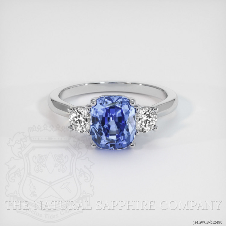 Three Stone Blue Sapphire Ring 2.93 Ct., 18K White Gold