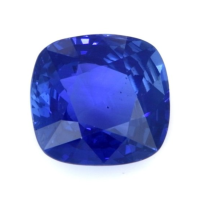 The ring features a beautiful, transparent C.Dunaigre certified Vivid Blue “Cornflower Blue” 3.04 carat cushion shape blue sapphire with the dimensions of 8.46 x 7.96 x 4.90 mm and a mixed brilliant cut. It has a clarity grade of eye clean (evaluated at eye level), vivid color saturation, and an excellent polish. The origin of this sapphire is Ceylon (Sri Lanka).