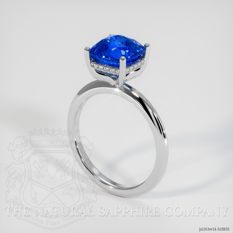The centerpiece of this exquisite ring from The Natural Sapphire Company is a magnificent 3.05 carat cushion shape blue sapphire. This gemstone is crafted with dimensions of 7.70 x 7.68 x 5.77 mm and features a mixed brilliant cut that enhances its innate splendor. Originating from the renowned mines of Ceylon (Sri Lanka), this sapphire boasts a clarity grade of very slightly included, meaning that any inclusions are minimal and can be seen only when closely observed. Its intense color saturation is a testament to its natural beauty, presenting a vivid blue hue that catches the light with every movement. The excellent polish adds to the gemstone’s luster, creating a mirror-like reflection that exudes sophistication and class.