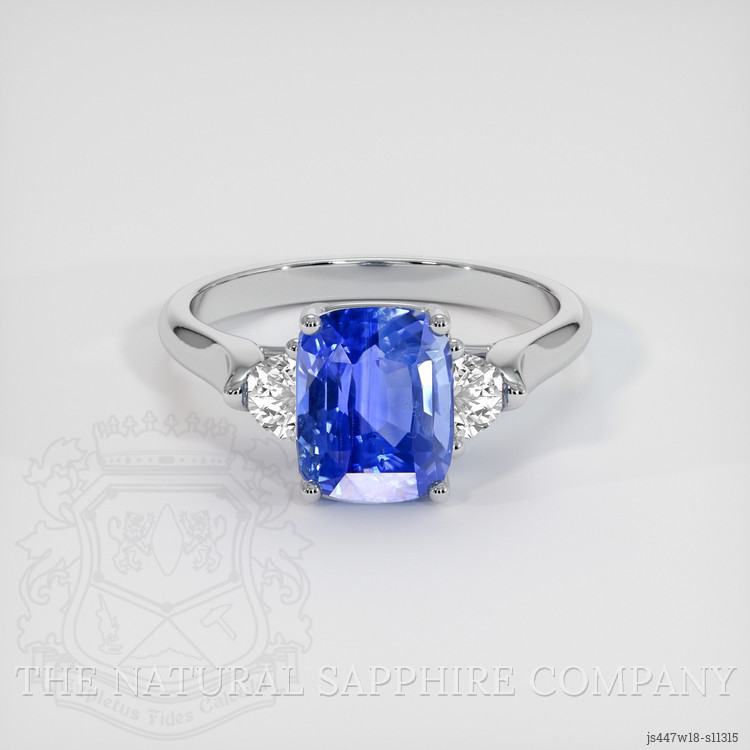 Indulge in the epitome of luxury and timeless elegance with our exquisite ring, a masterpiece crafted by The Natural Sapphire Company. Featuring a stunning 3.14 carat cushion-shaped blue sapphire sourced from the rich, storied lands of Ceylon, each glance offers a mesmerizing glimpse into the heart of nature's beauty. The dimensions of this splendid gem, precisely 8.57 x 6.95 x 5.59 mm, are accentuated by a mixed brilliant cut, maximizing its inherent brilliance and fire. The sapphire boasts an intense color saturation, a deep azure that speaks the language of the oceans and skies, while its clarity grade, slightly included when evaluated at eye level, assures the beholder of its natural origins. Every facet of this splendid stone has been polished to perfection, offering a mirror-like surface where dreams and aspirations are reflected.