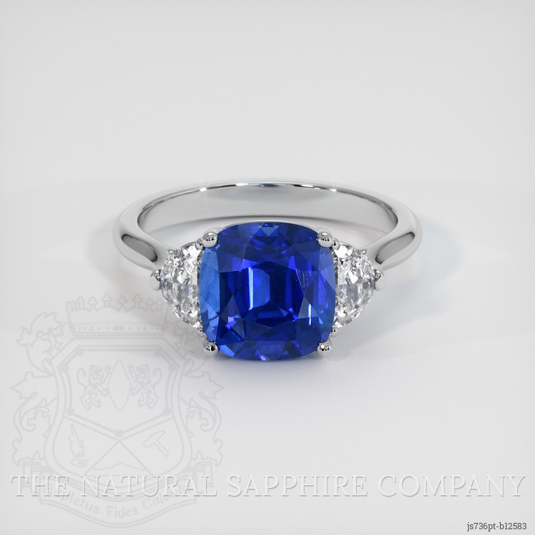 Three Stone Blue Sapphire Ring 3.56 Ct., Platinum 950