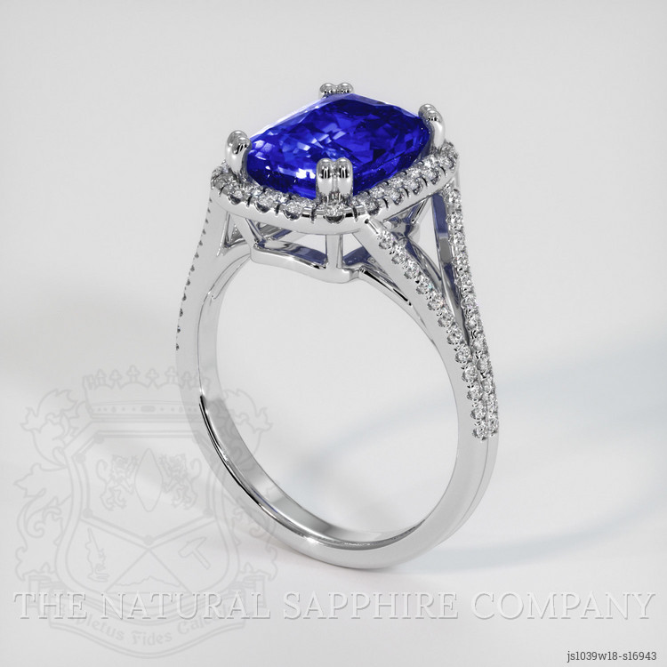Pave Blue Sapphire Ring 4.01 Ct., 18K White Gold