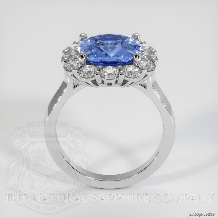 Discover the epitome of elegance and tradition with our stunning sapphire and diamond ring. At The Natural Sapphire Company, we have curated an exceptional piece that embodies both history and timeless beauty. The centerpiece of this exquisite ring is a transparent 4.06 carat cushion-shaped blue sapphire from the serene lands of Sri Lanka, known as Ceylon. With dimensions of 9.57 x 9.45 x 5.12 mm, this gemstone radiates with medium color saturation, ensuring that every movement captures light in a mesmerizing dance. Its mixed brilliant cut enhances its sparkle, while the very slightly included clarity maintains its near-perfect appearance to the naked eye, revealing the sapphire's natural beauty.