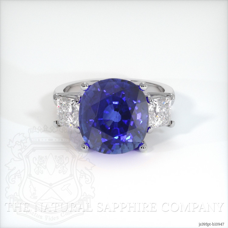 Three Stone Blue Sapphire Ring 4.49 Ct., Platinum 950