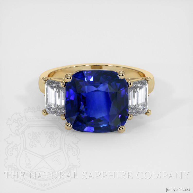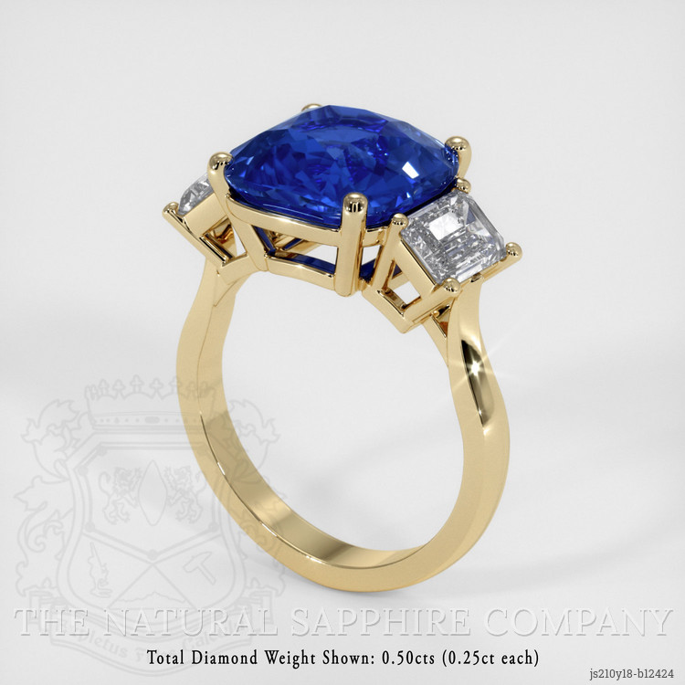 Three Stone Blue Sapphire Ring 6.02 Ct., 18K Yellow Gold