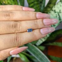 The heart of this remarkable piece is a stunning 0.66 carat blue sapphire, expertly cut in an emerald shape to accentuate its striking transparency and innate brilliance. Sourced from the rich lands of Madagascar, this sapphire boasts a medium intense color saturation that captures light and attention effortlessly. Its eye-clean clarity ensures a pristine appearance, free from any visible imperfections, allowing the gem’s natural beauty to shine through. This sapphire is not just a gemstone—it’s a story waiting to be told, a reflection of the magic in your own love story.
