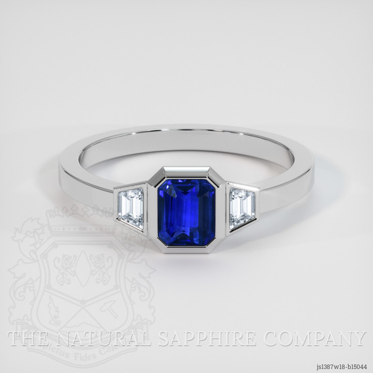 Three Stone Blue Sapphire Ring 1.01 Ct., 18K White Gold