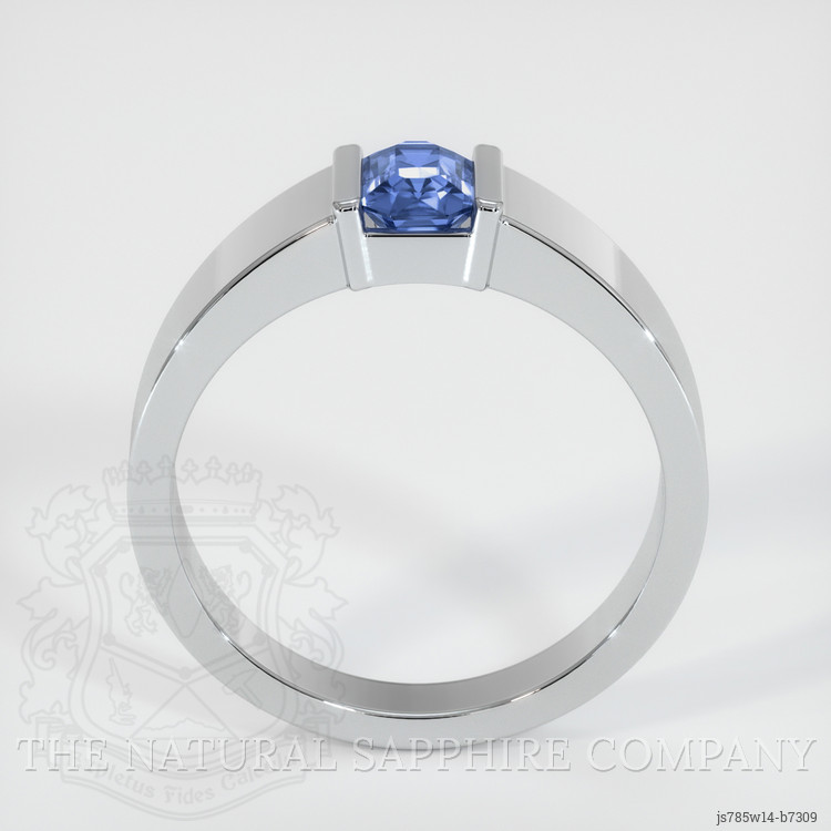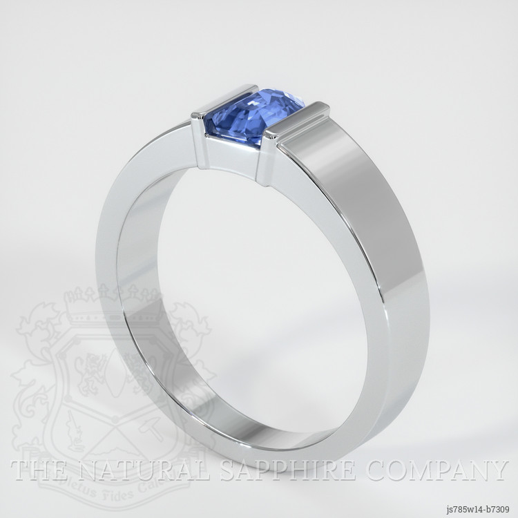 The men's ring features a beautiful, transparent 1.04 carat emerald cut shape blue sapphire with the dimensions of 6.62 x 4.68 x 3.68 mm and a emerald cut. It has a clarity grade of very slightly included (evaluated at eye level), medium intense color saturation, and an excellent polish. The origin of this sapphire is Ceylon (Sri Lanka).