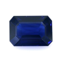The ring features a beautiful, transparent 1.07 carat emerald cut shape blue sapphire with the dimensions of 6.84 x 4.86 x 2.91 mm and a emerald cut. It has a clarity grade of eye clean (evaluated at eye level), vivid color saturation, and an excellent polish. The origin of this sapphire is Thailand.
