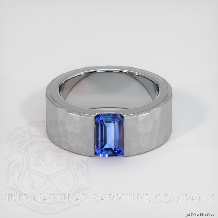 Men's Blue Sapphire Ring 1.09 Ct., 14K White Gold