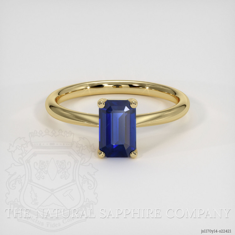 At The Natural Sapphire Company, we take this exquisite stone and transform it into a masterpiece that speaks both of its ancient origins and modern elegance. Expert hands shape the sapphire into a 1.09 carat emerald cut, revealing its unrivaled splendor and the delicate play of light upon its surfaces. The precise dimensions of 7.05 x 4.57 x 3.25 mm ensure a perfect balance and allow the sapphire’s innate brilliance to shine forth. To enhance this natural allure, the stone is set against the warm, rich tones of 18K yellow gold. The setting not only frames the gem with grace but also complements the sapphire’s deep, celestial hue, creating an interplay of colors that is both striking and harmonious.